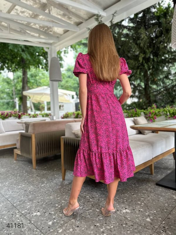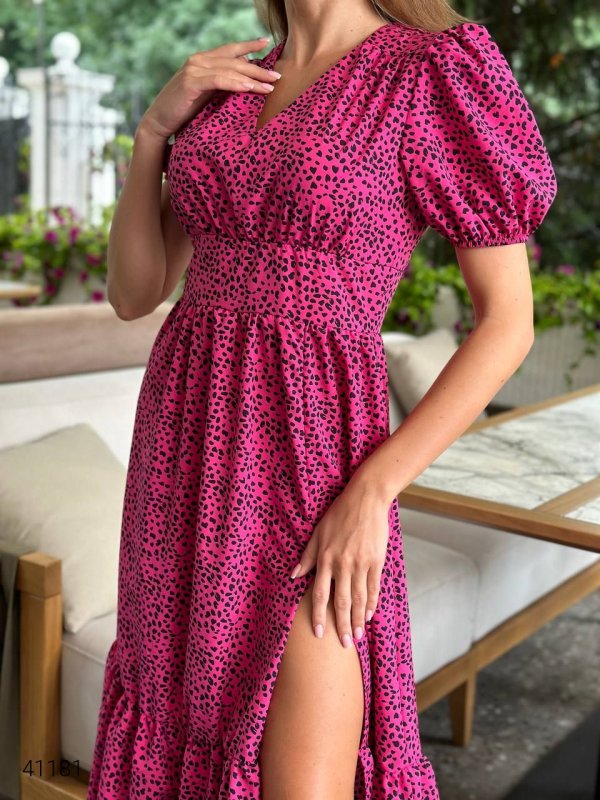 Летнее платье. На спине потайная молния. Рукава на резинке. На юбке боковые разрезы. Ткань: турецкий софт.
