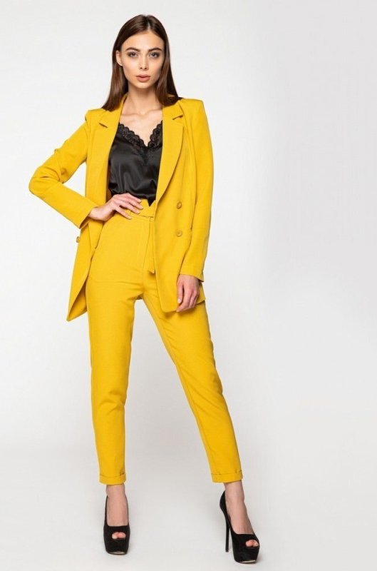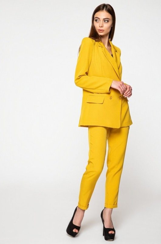 Модный брючный костюм 3035 горчица