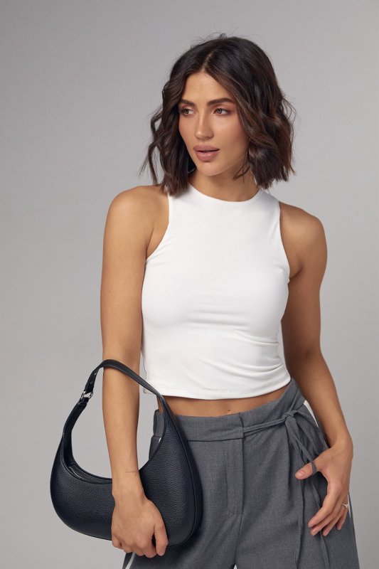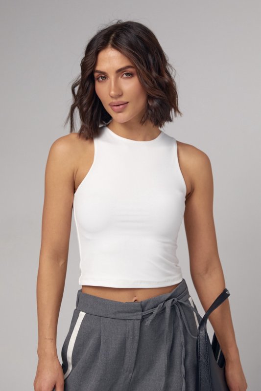 Однотонная базовая майка с эластичной ткани - 8867 молочная