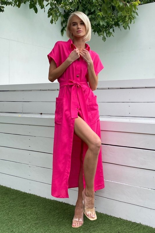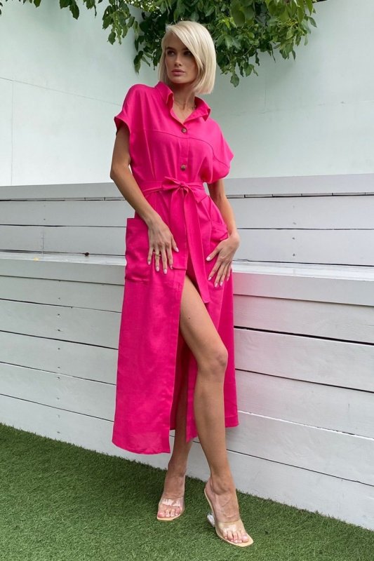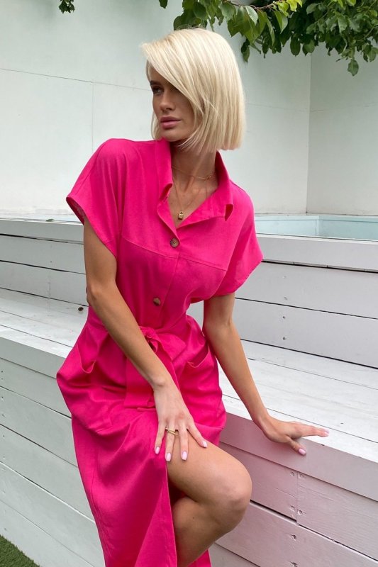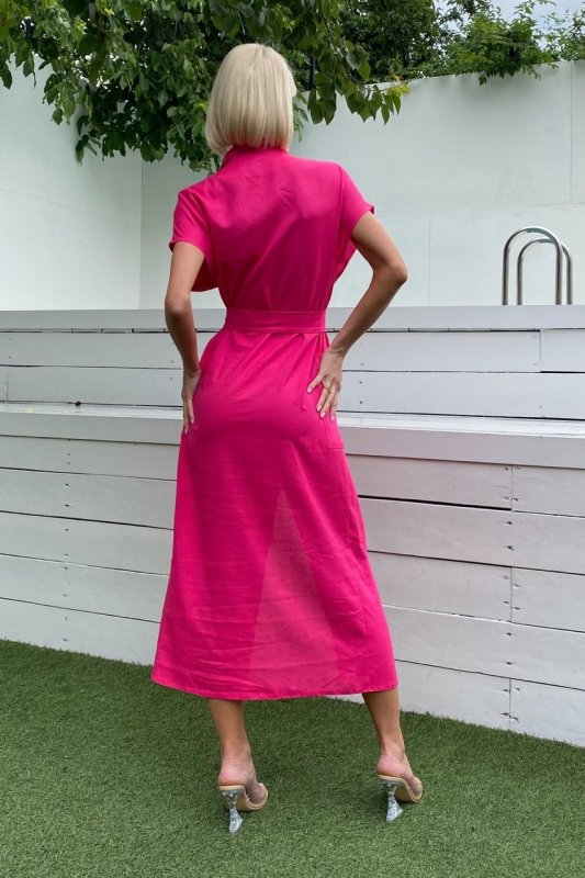 Удлиненное платье-рубашка из льняной ткани: классический откладной воротник, короткий спущенный рукав с фиксированными вылогами, съемный пояс и два накладных кармана. Очень легкая и универсальная модель на каждый день!