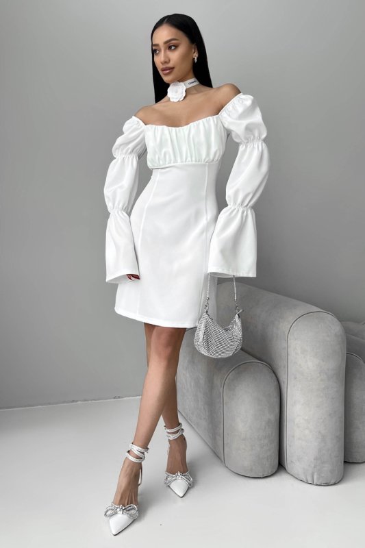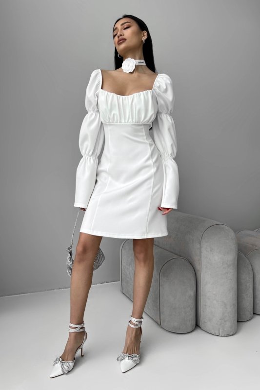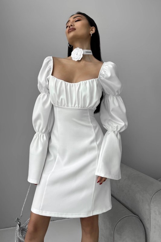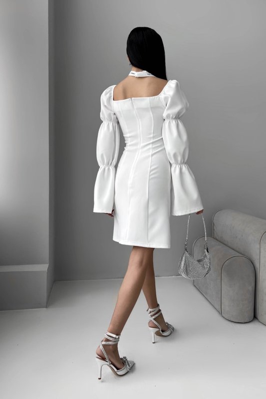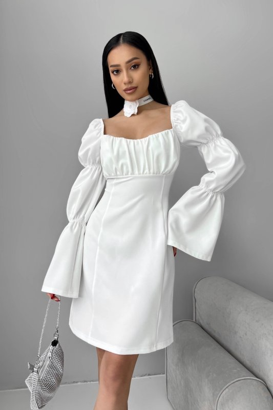 Посетите мир игривости и яркости с нашим мини – платьем. Одновременно элегантный и сексуальный наряд подчеркнет вашу индивидуальность. Модель отрезают интересно оформленные рукава с драпировками, расклешенные вниз. Драпиронный лиф на поролоне, по спинке молния.