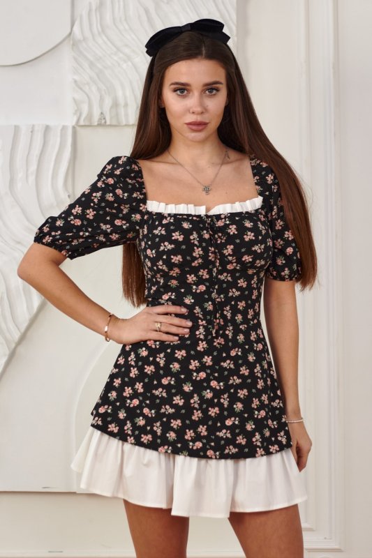 Платье из софта в цветочек с белой юбкой из коттона 51437