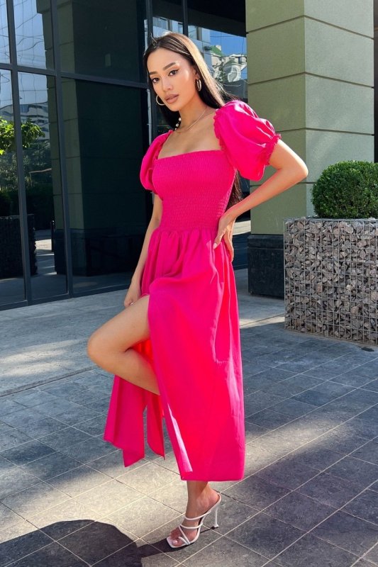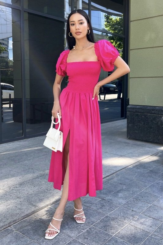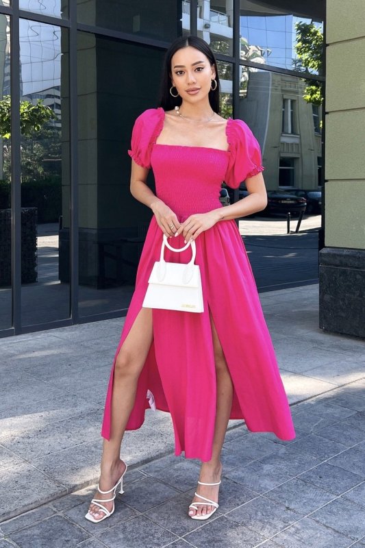 ● Декоративные элементы: резинка по лифу, высокие разрезы по переду.