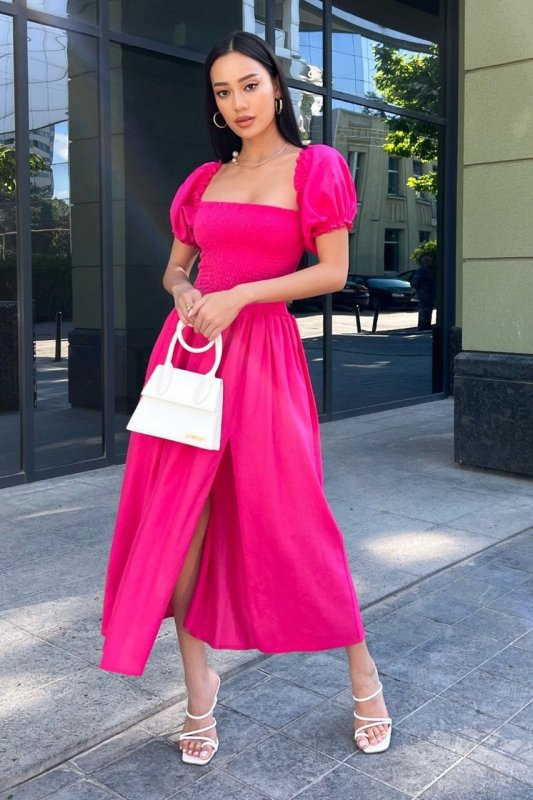 Наступило лето, а значит пора разбавить серые и монотонные образы яркими оттенками, и добавить в этот мир сочных красок! Теперь это самый главный "козырь" в твоем гардеробе, - новое платье из льна. При создании модели мы подумали, что нет ничего более приятного и комфортного, чем легкий и нежный лен в сочетании с классическим силуэтом. Лиф на резинке, отлично подойдет для стройных девушек да и обладательниц пышных форм. По переду предусмотрен высокий разрез. Рукав – пришивной, на резинке. Пышная юбка с двумя разрезами придаст Вашему образу романтичности.