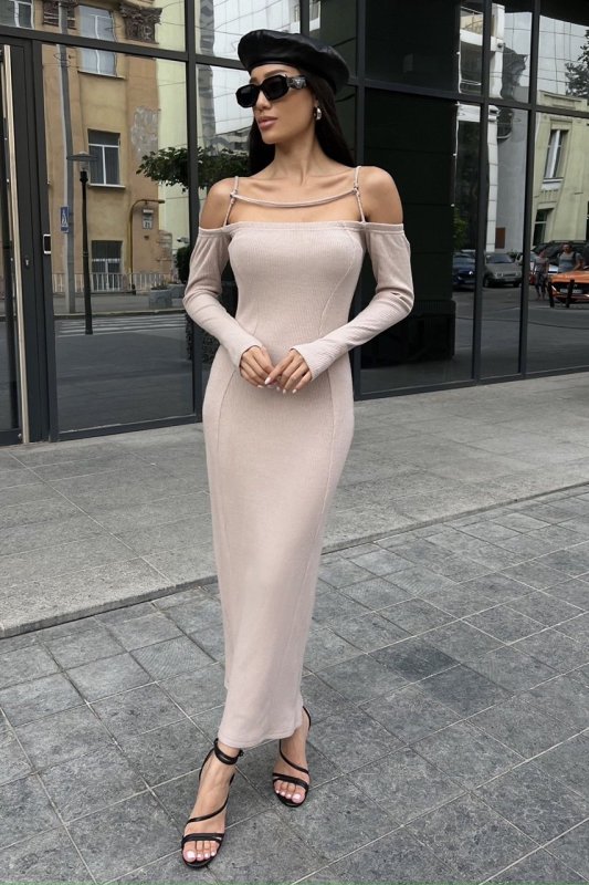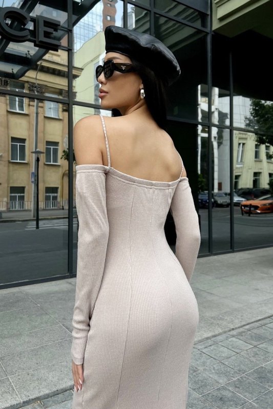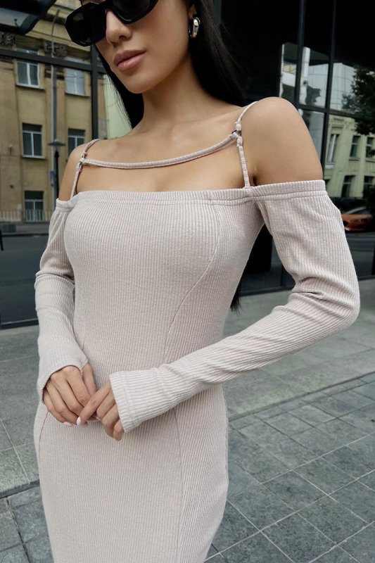 Лаконичное платье меди на тонких бретельках. Хорошо подчеркнет вашу фигуру и будет отличным выбором как для повседневного образа, так и для вечернего выхода. Выполнили из трикотажа в мелкий рубчик. Необычайно изящная и нежная модель.