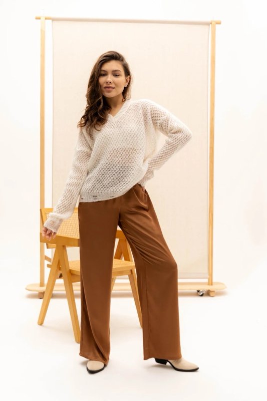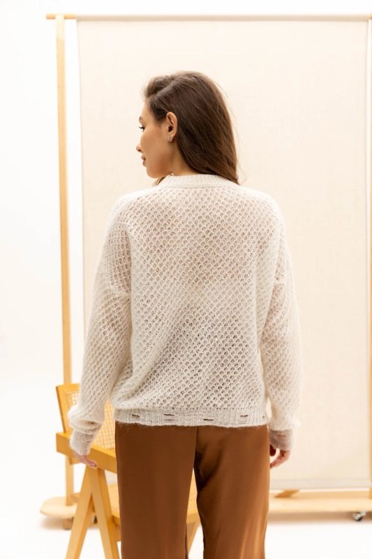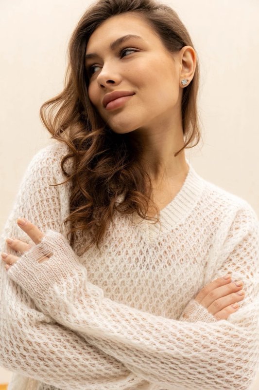 Высококачественная декоративная вязка, прямой свободный фасон, длинный приспущенный рукав – все готово радовать и дарить ощущение незабываемого комфорта. Женский пуловер белого цвета можно носить с разными дополнениями гардероба: юбка, брюки, шорты практически любых фасонов. Любое сочетание будет смотреться стильно, а вы будете выглядеть сногсшибательно!