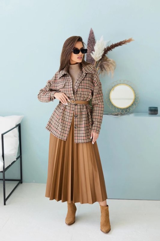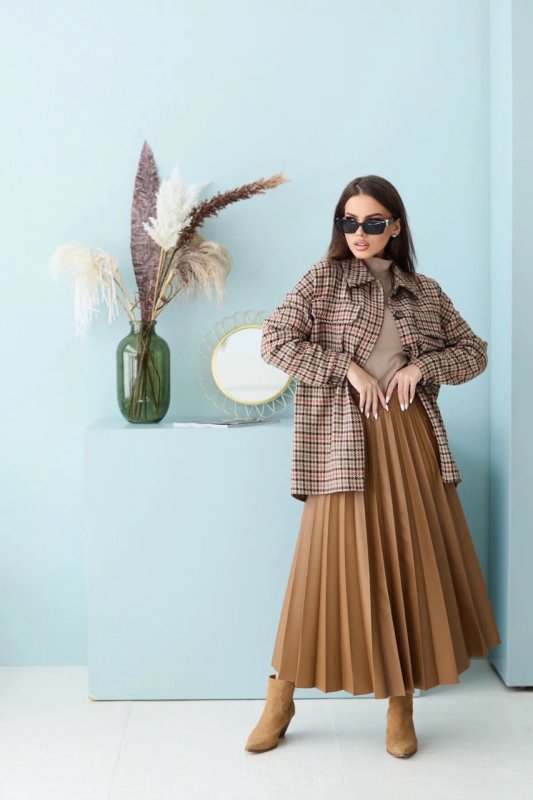 Идеальным дополнением любого образа будет рубашка. Принт клетка по-прежнему в ТОПе. Фасон свободный, прямой. Рукав длинный, приспущенный.