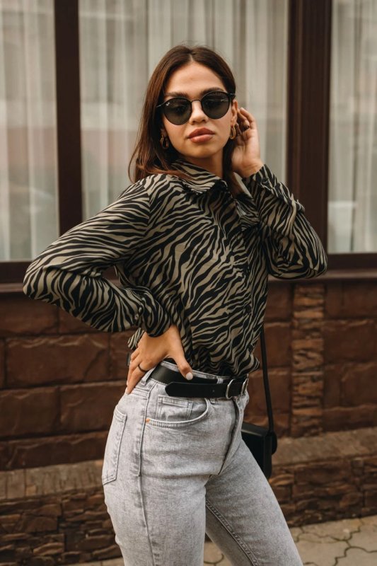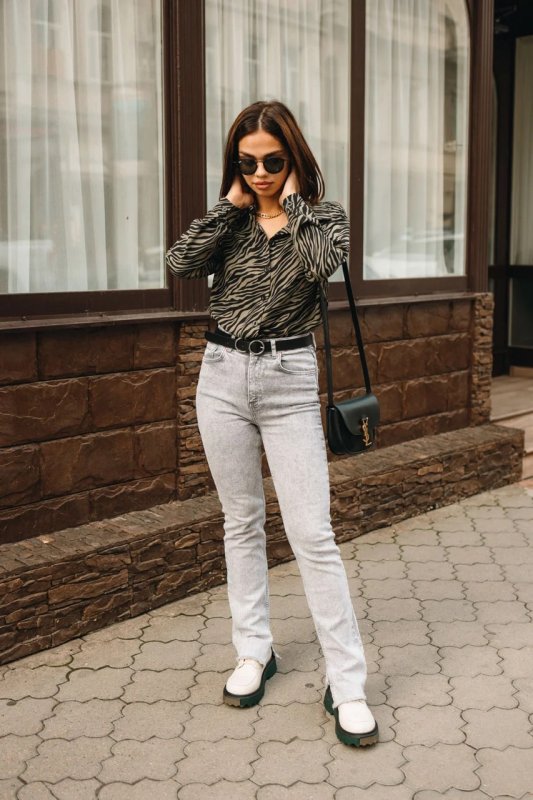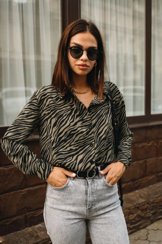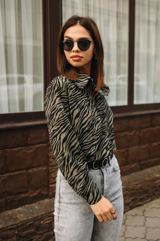 Фасон: прямой, свободный, с манжетами, с воротником рубашечного типа.