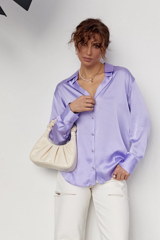 Шелковая блуза на пуговицах - 3334 фиолетовый