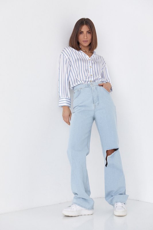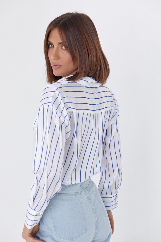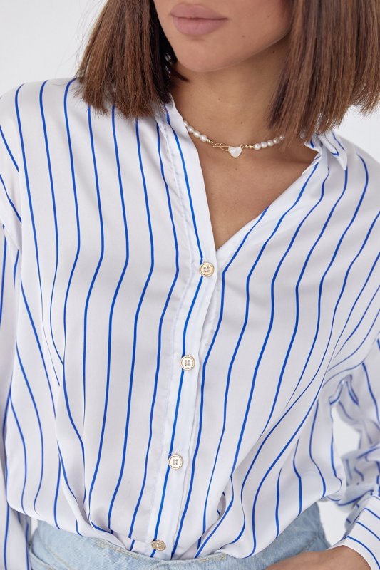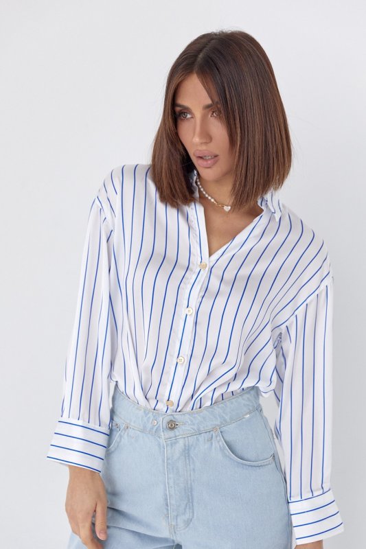 Шелковая блуза на пуговицах в полоску 8774 синяя
