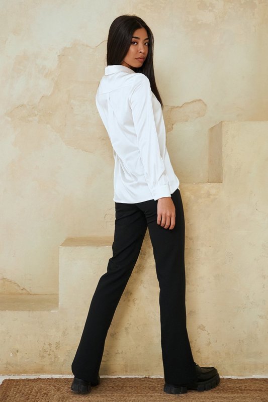 Стильная шёлковая рубашка с отложным воротом с длинным рукавом. Застёгивается на пуговицы. Шёлковая рубашка – легко адаптируется под образ в самых разных стилях. Свободный крой модели подходит для любой фигуры.