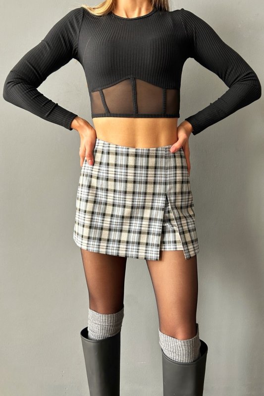 Шорты-юбка из костюмной ткани в клетку 6212