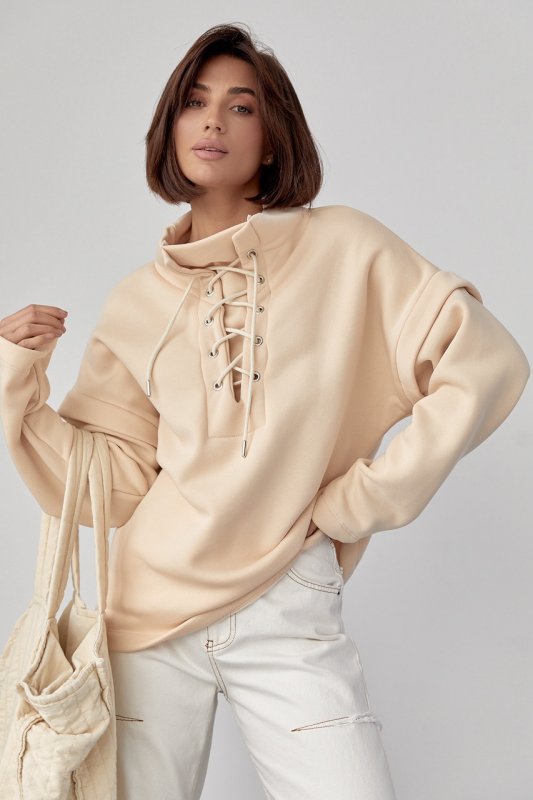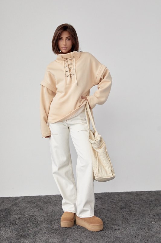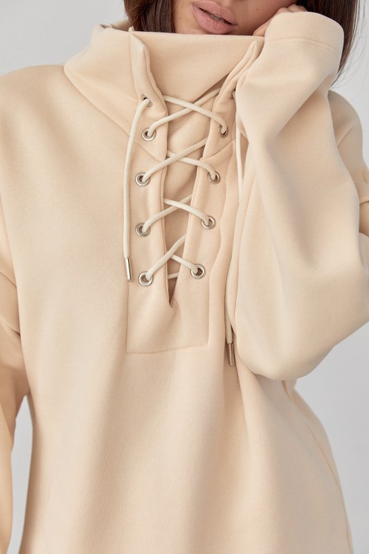 Теплый свитшот со шнуровкой на горловине - 05141 бежевый