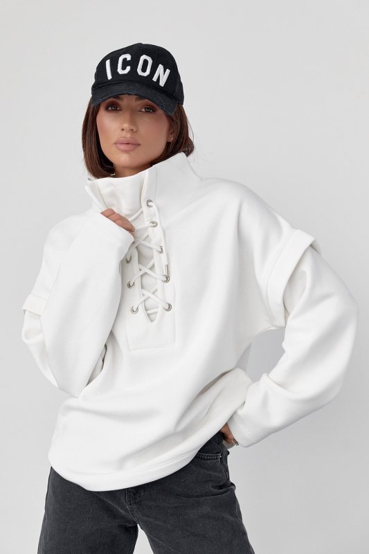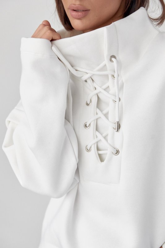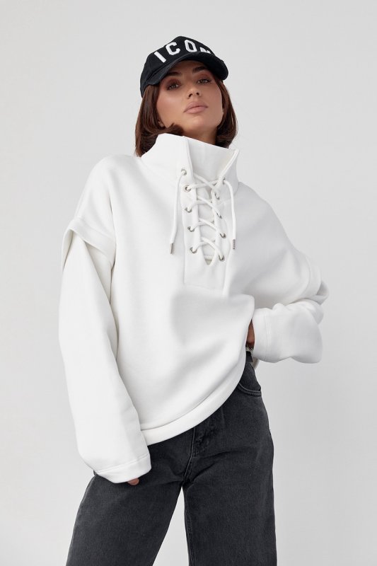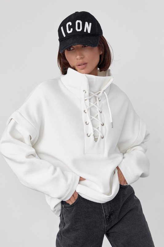 Теплый свитшот со шнуровкой на горловине - 05141 молочный