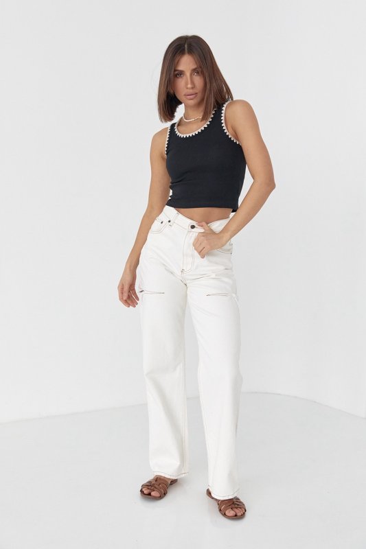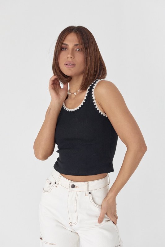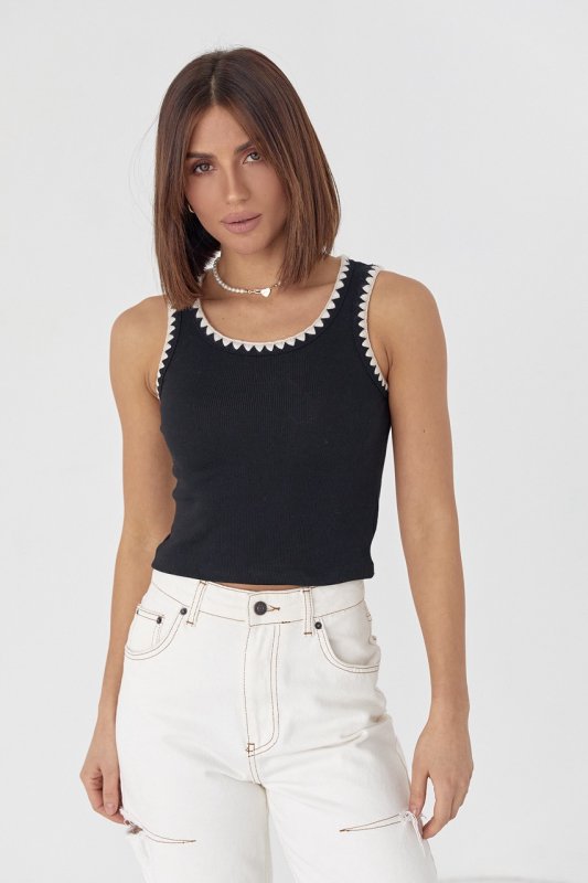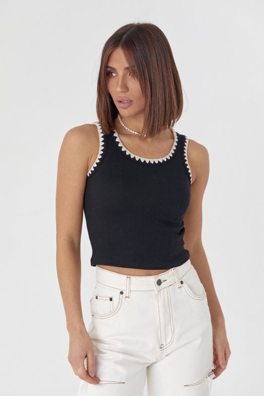 Трикотажная майка с вышивкой зигзаг - 8289 черная