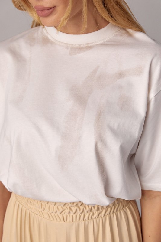 Трикотажная женская футболка с лаконичным принтом - 80178 молочная