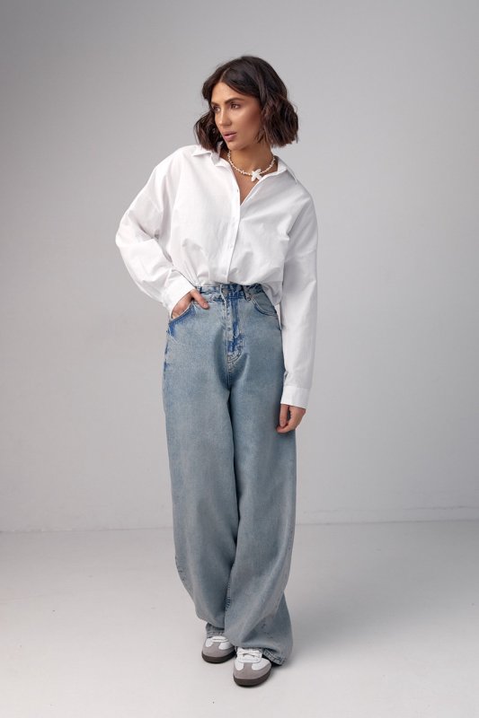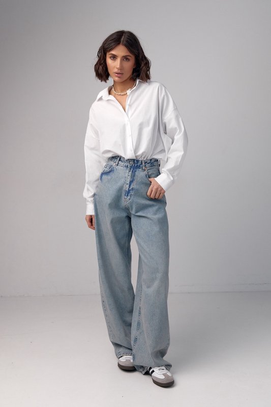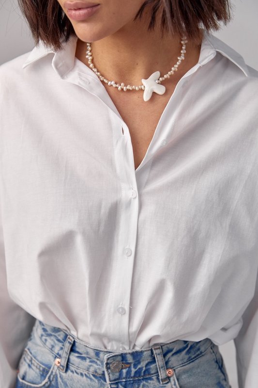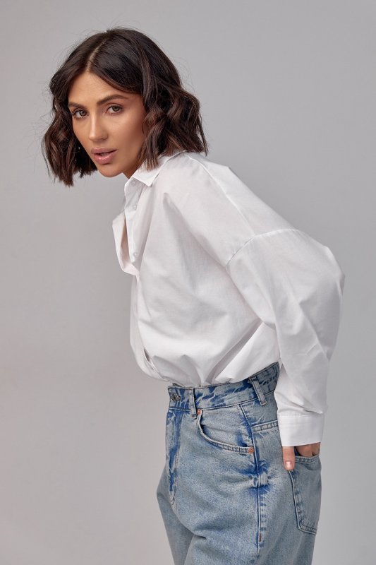Удлиненная женская рубашка в стиле oversize - 05213 белая