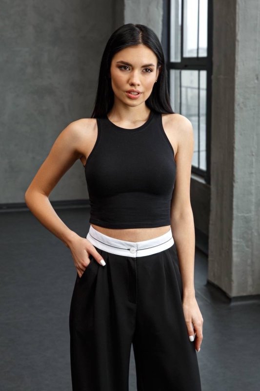 Укороченная облегающая майка силуэта - идеальный выбор для создания современного и стильного образа. Выполнена из мягкого трикотажа, который приятен на ощупь и обеспечивает комфортную посадку. Эта майка отлично подходит для совмещения с джинсами или юбкой и станет незаменимой вещью в гардеробе каждой модницы. Измерения в нерастянутом состоянии