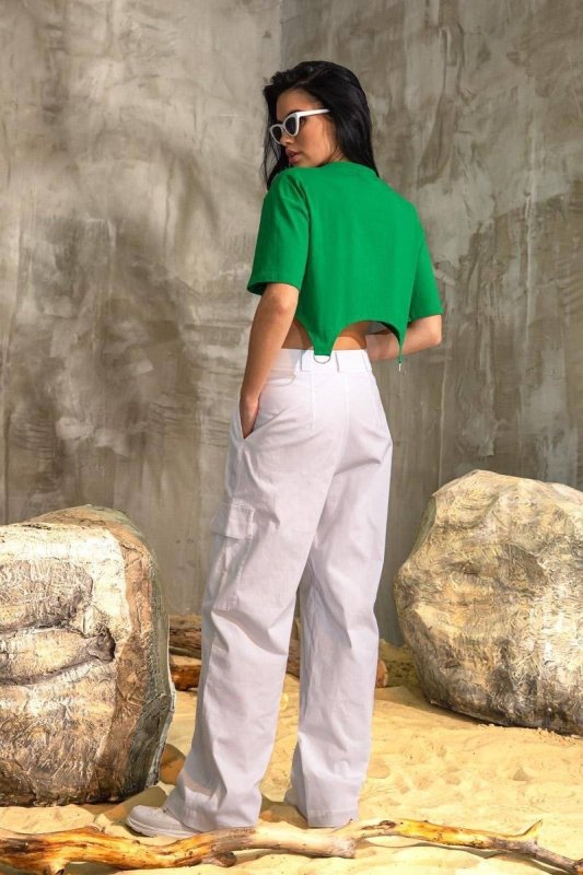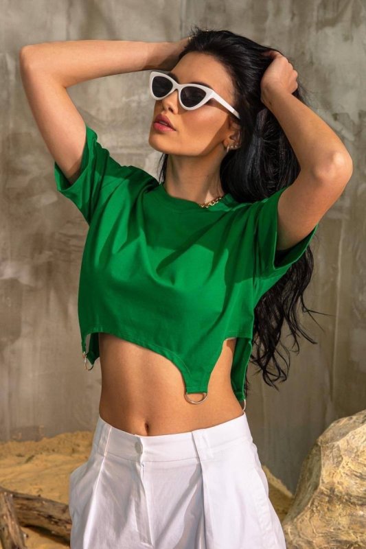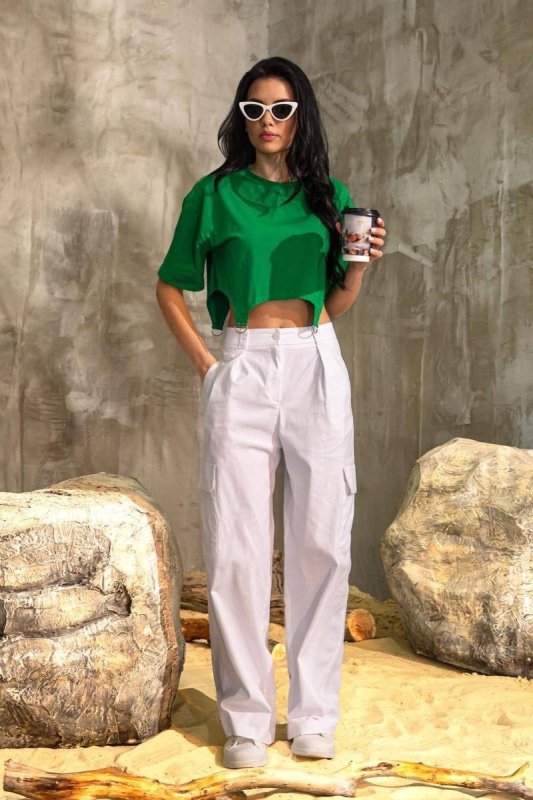 Модная укороченная футболка свободного кроя с имитацией подтяжек. Стильная и очень комфортная вещь, сочетающаяся любым стилем одежды.
