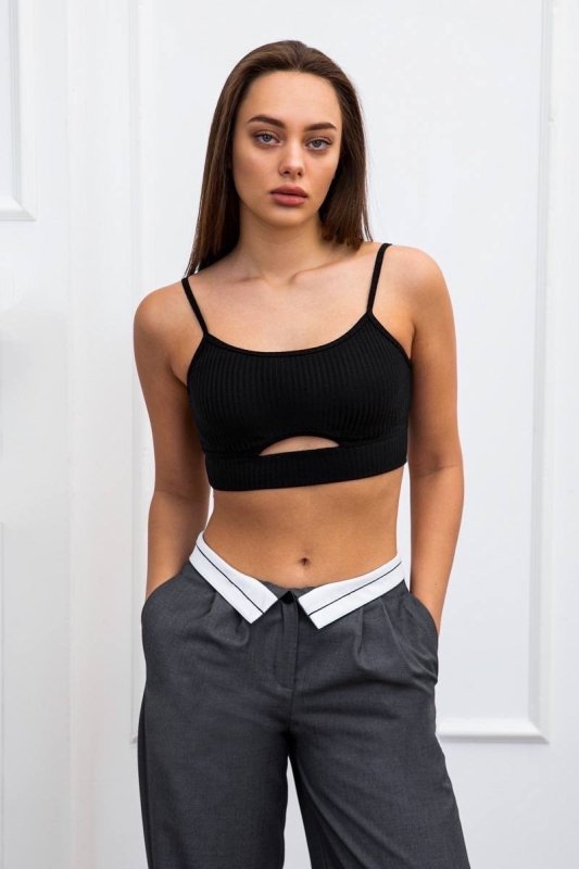 Укороченная майка в стиле белья из трикотажа рубчик 8394