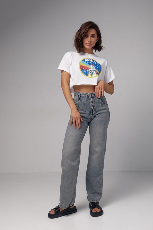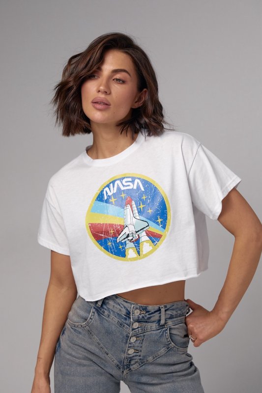 Укороченная женская футболка с принтом Nasa - 1259 белая