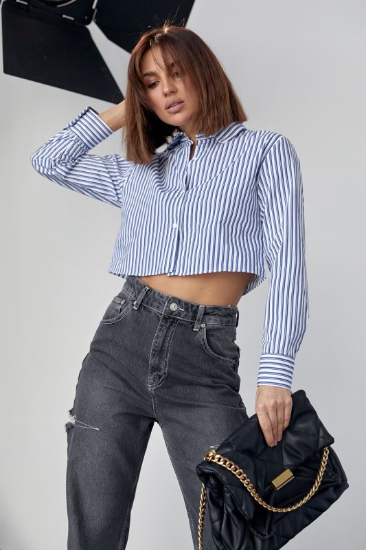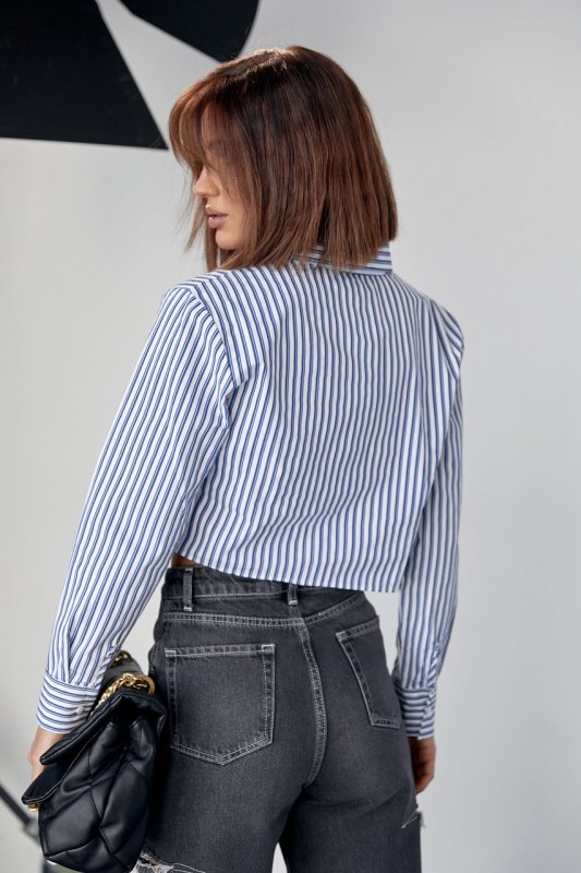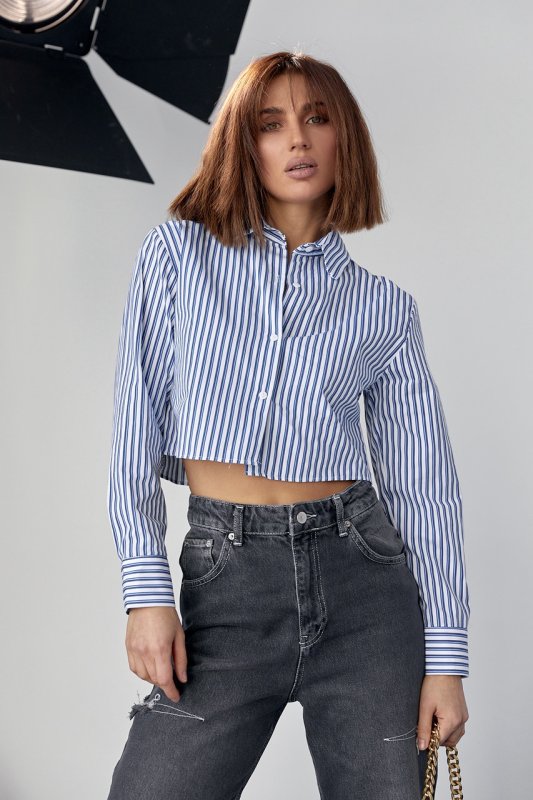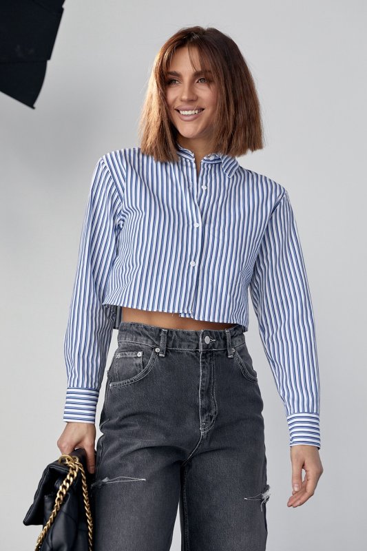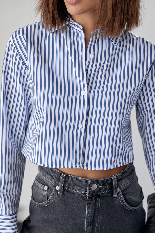 Укороченная женская рубашка в полоску - 091130 голубой