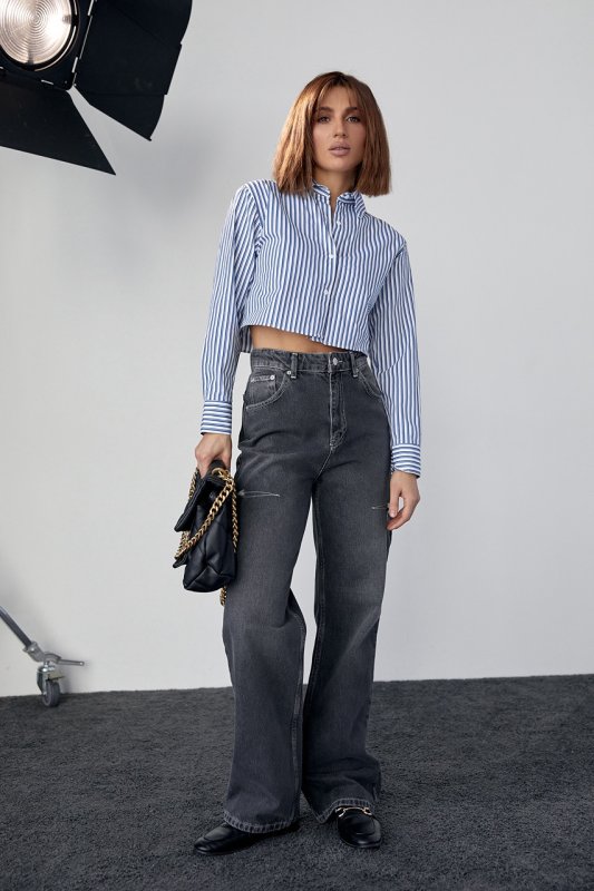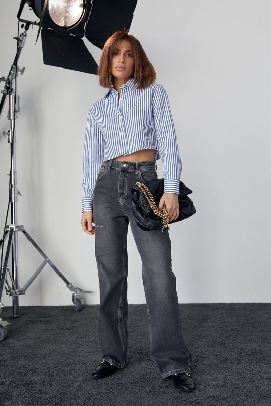 Укороченная полосатая рубашка женская станет главным акцентом ваших модных образов и в летний период, и в межсезонье.