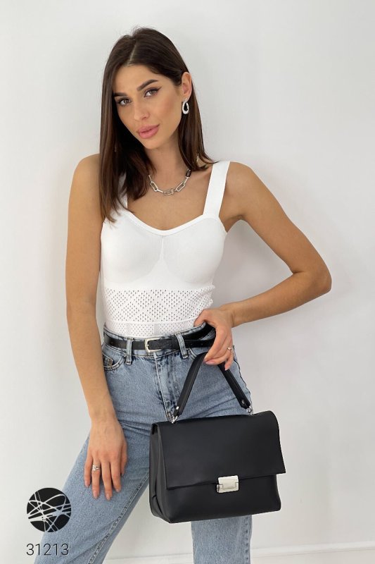 Боди на тонких бретелях, производства Турции. Облегающий крой, вырез-сердечком, имитация пуш-ап. Декорирован перфорацией, планка на кнопках. Состав ткани: 100% - полиэстер. Размер универсальный, подходит на 40-44.