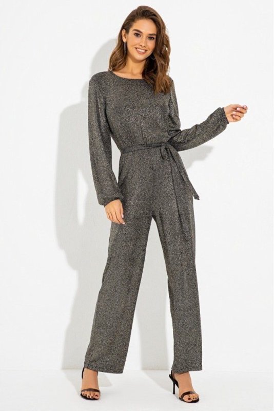 Вечерний комбинезон из приятного к телу трикотажа с мерцающими частицами. Открытая спинка, объемный рукав и брюки прямого кроя придают особый шик женскому образу. Особенностью модели является легкость и воздушность, способность добавить раскованность и игривость внешнему облику. Шикарный наряд можно надеть на выпускной вечер, юбилей, презентацию, модный показ и любое праздничное мероприятие.