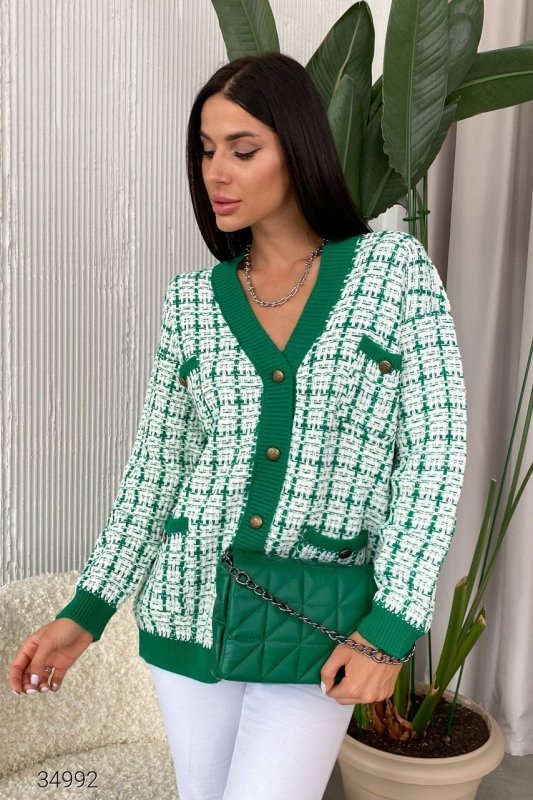 Вязаный кардиган 34992 зеленый