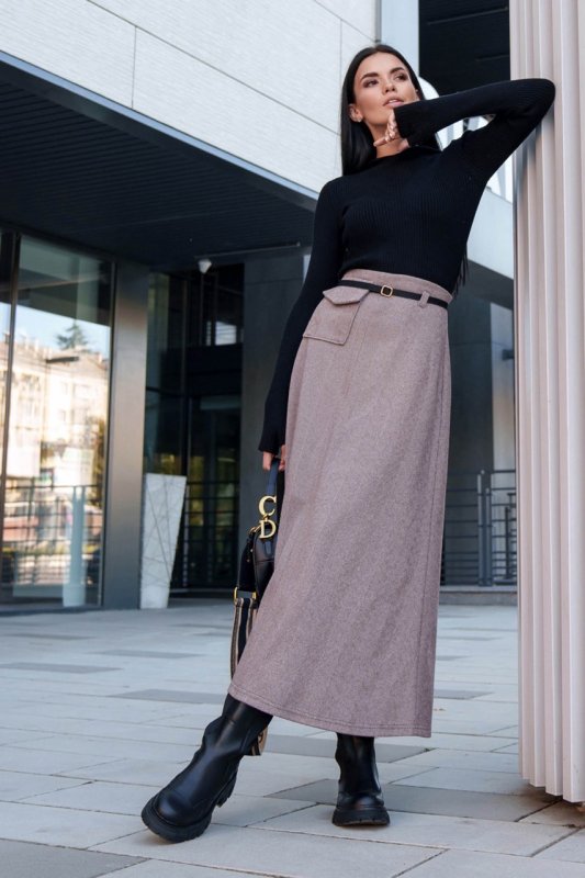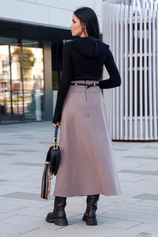 Теплая миди-юбка А-силуэта из плотной ткани – находка для осеннего и зимнего гардероба. Лаконичный стиль будет уместен и со светлой рубашкой или жакетом, и с контрастной водолазкой. А универсальная длина юбки позволяет носить ее с разной обувью. Учитывая нейтральную окраску, такую юбку легко можно вписать в офисный гардероб.
