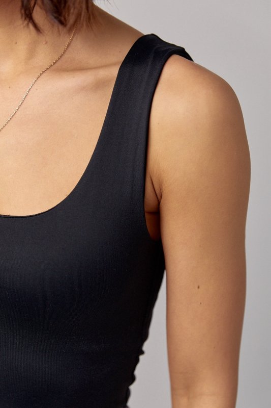 Однотонная базовая майка на широких бретелях - идеальное дополнение к любому модному образу! Эта модель подойдет и под женские брючные костюмы, и под нарядные юбки, и под повседневные джинсы.