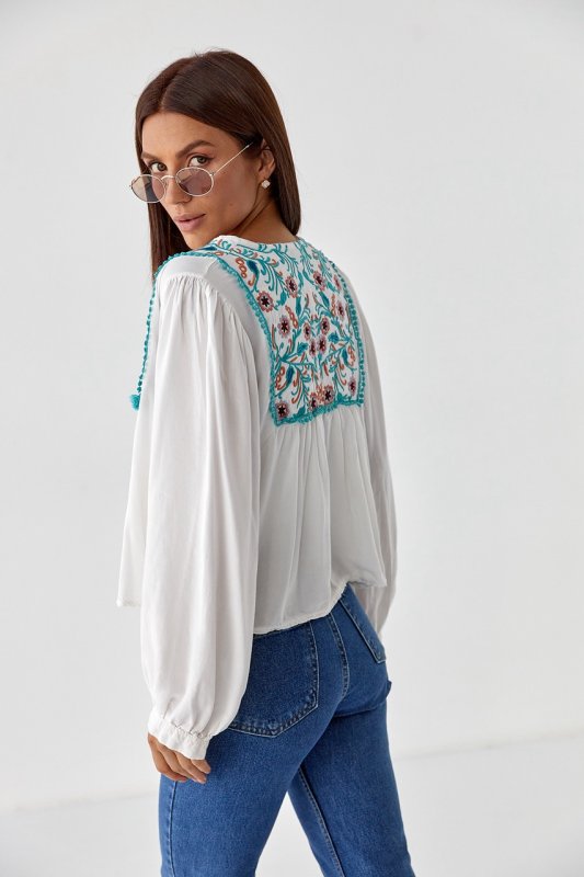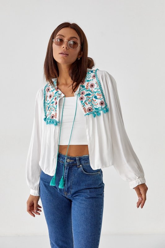 Женская блуза-накидка с вышивкой - 5092 молочный