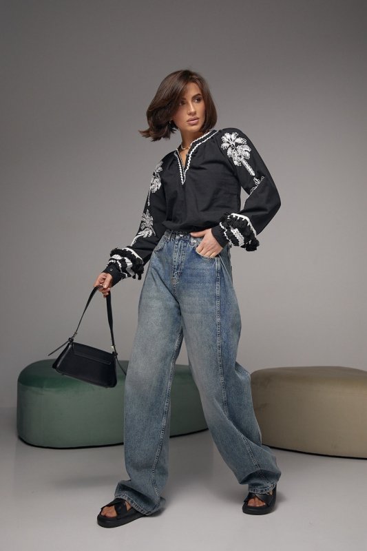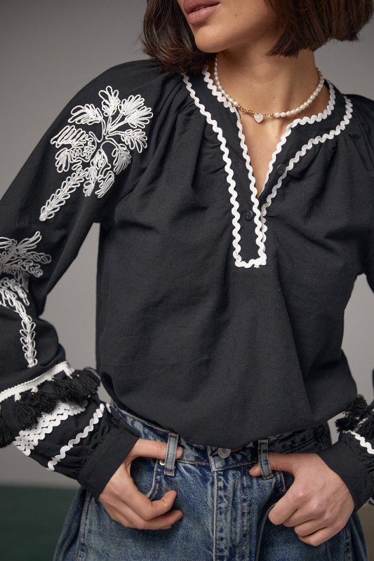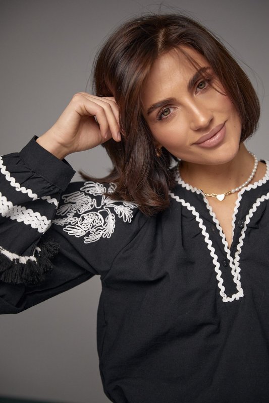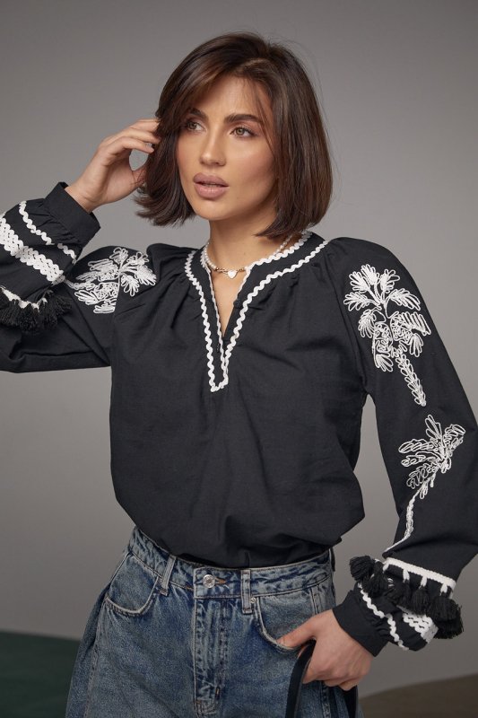 Женская блуза-вышиванка в этностиле 15602 черная