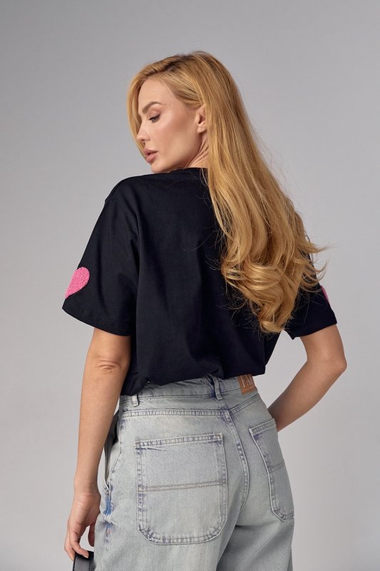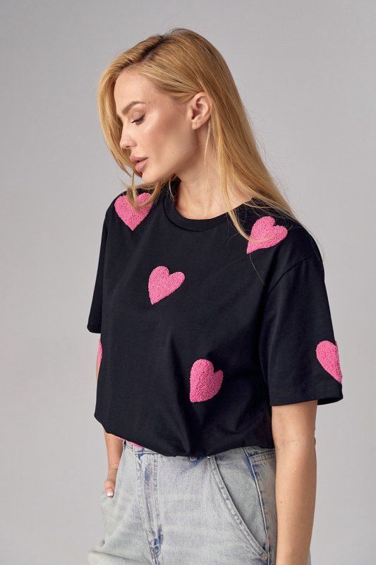 Женская футболка oversize с сердечками - 30410 черная