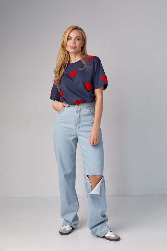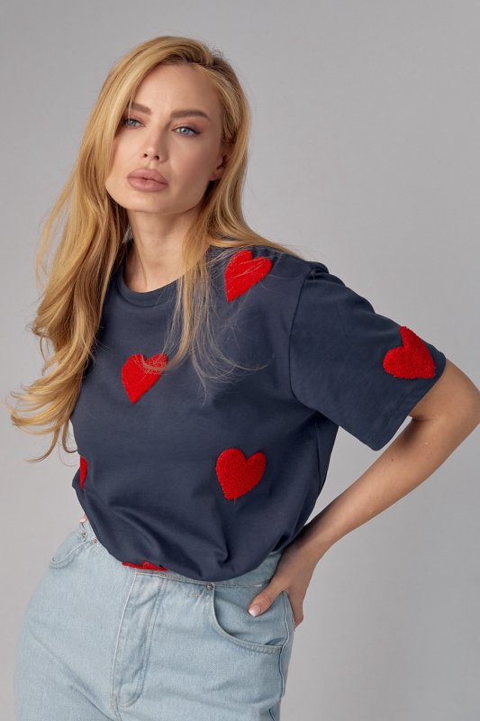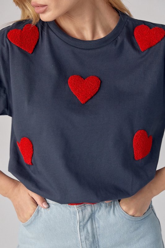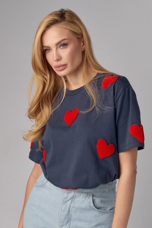 Женская футболка oversize с сердечками - 30410 темно-серая