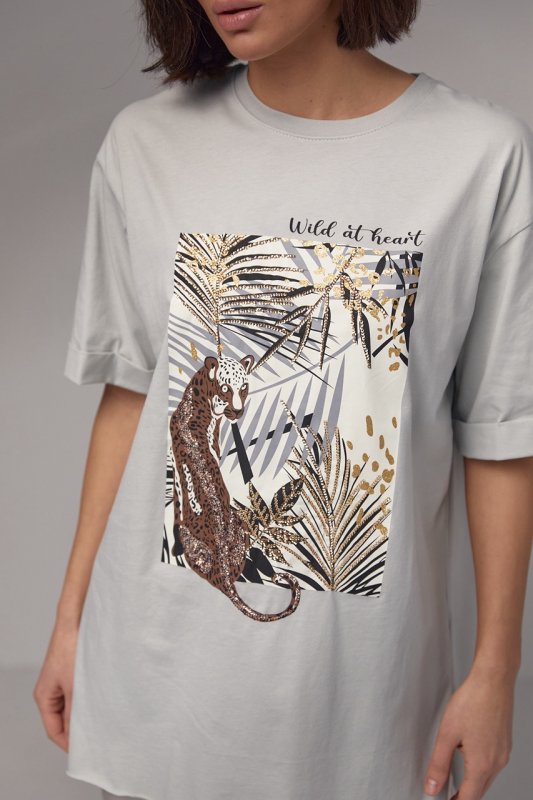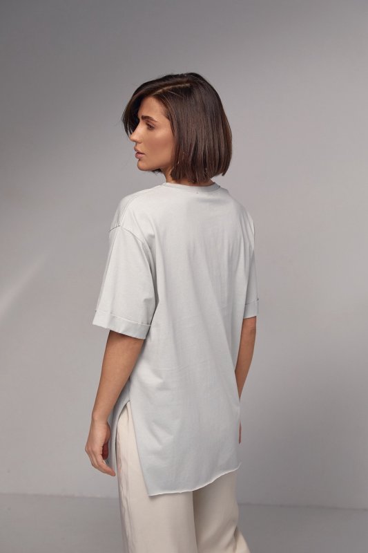 Женская футболка с разрезами и ярким принтом 14557 серая