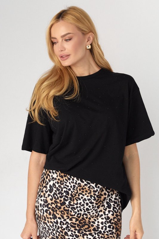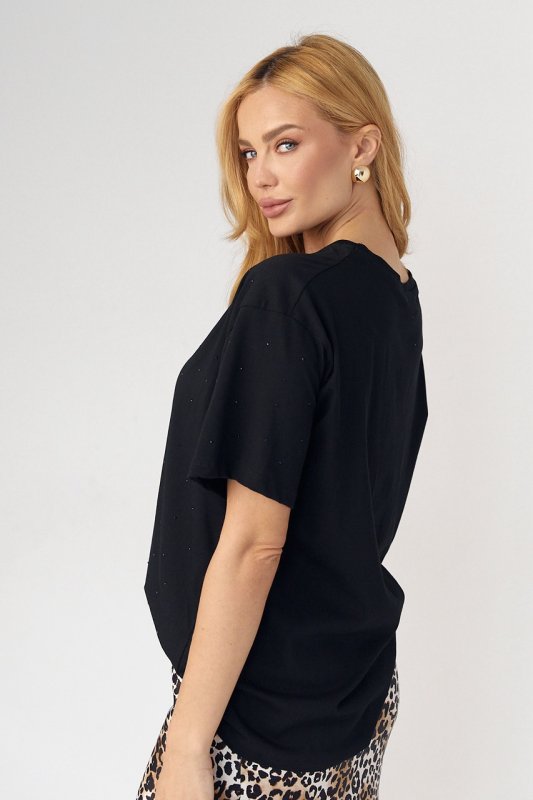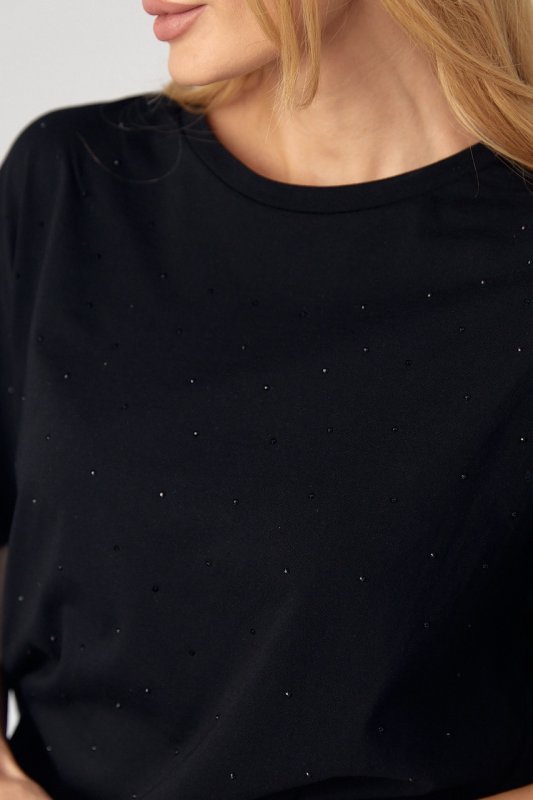 Женская футболка с термостразами - 8811 черная