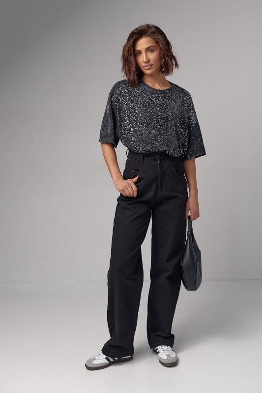Женская футболка в технике тай-дай украшена термостразами - 13456 черная
