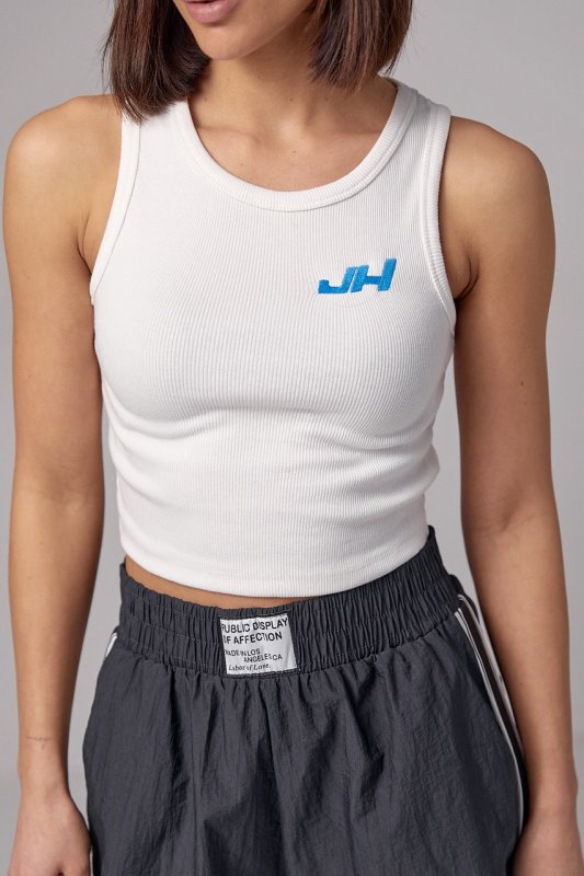 Женская майка в рубчик с вышивкой JH - 2961 молочная
