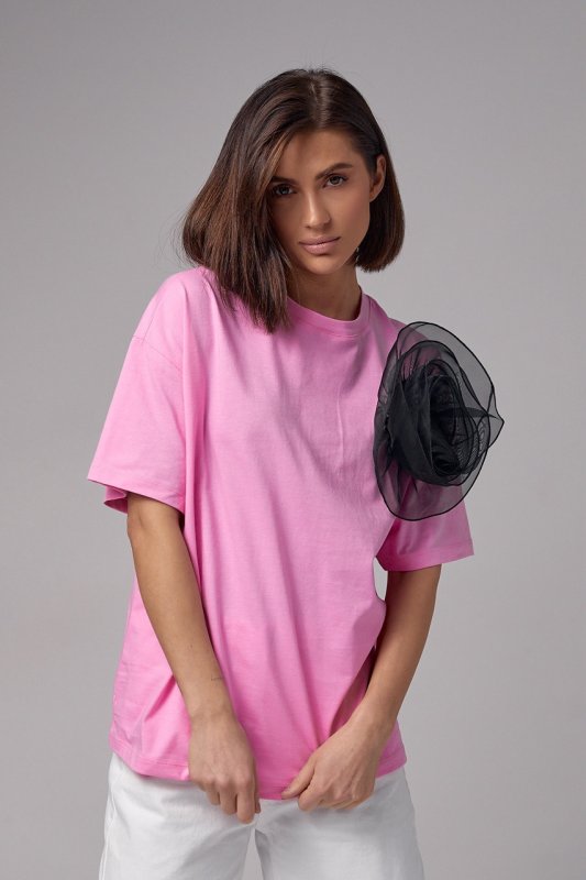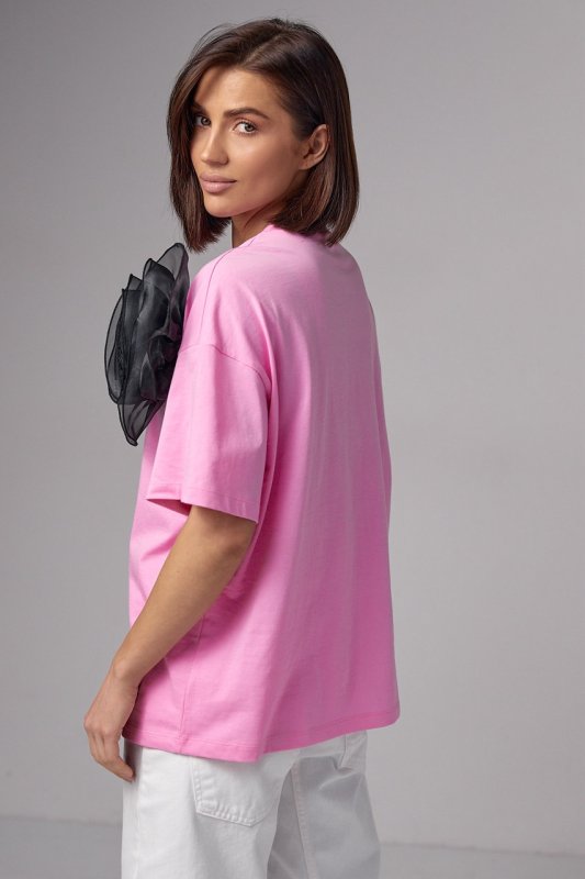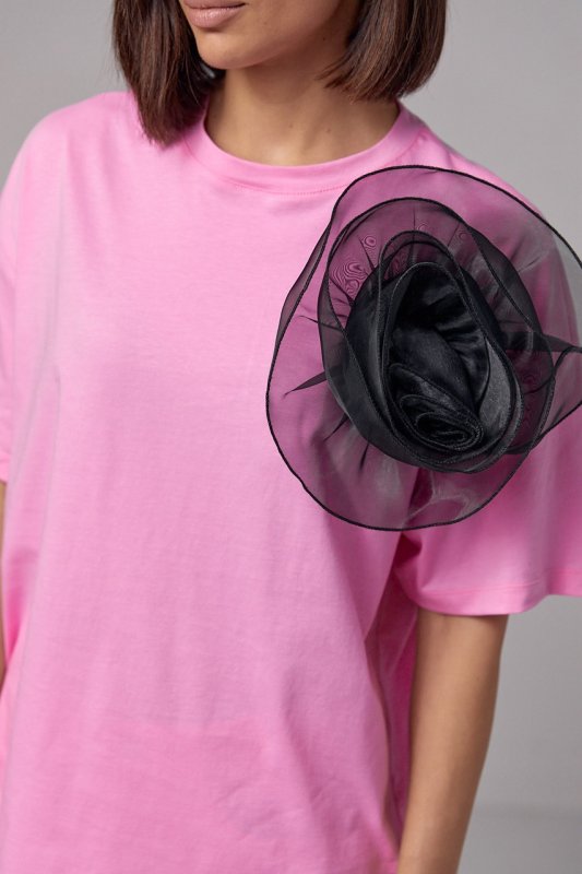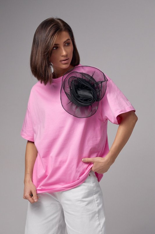 Женская трикотажная футболка с объемным цветком - 14561