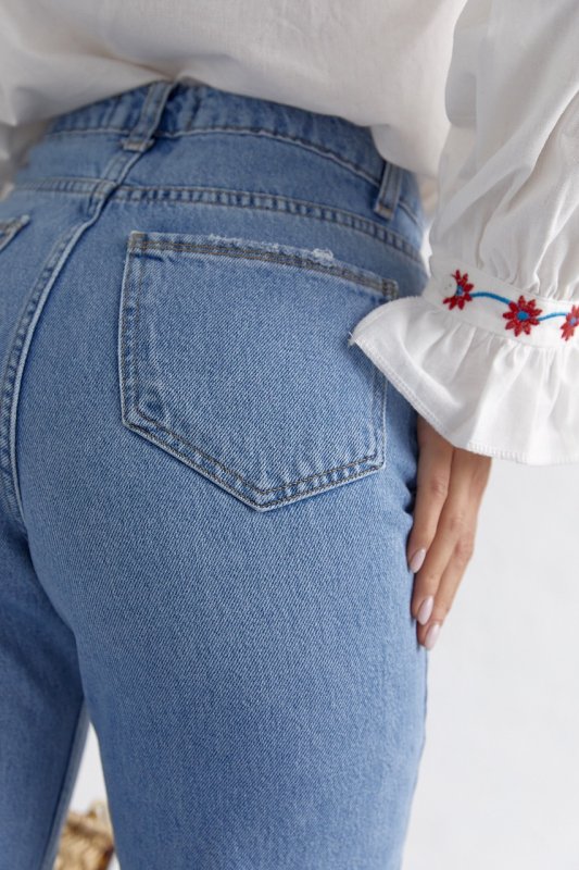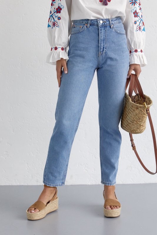 Женские джинсы МОМ с завышенной талией - 0715 голубой