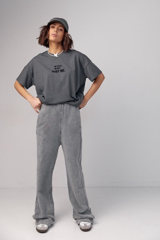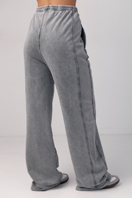 Женские трикотажные штаны с затяжками внизу - 1136 серые