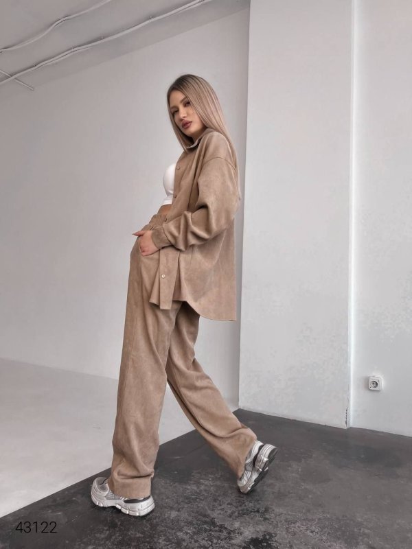 Женский брючный костюм с рубашкой 43122 бежевый