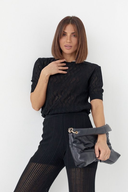 Женский костюм с ажурной вязки - 023128 черный