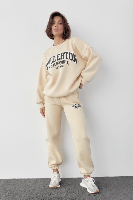 Женский спортивный костюм на флисе Fullerton California - 23166 кремовый