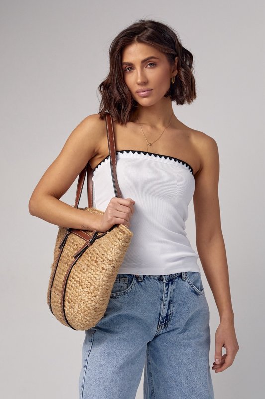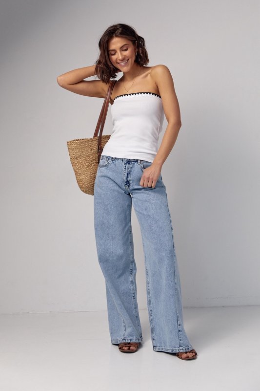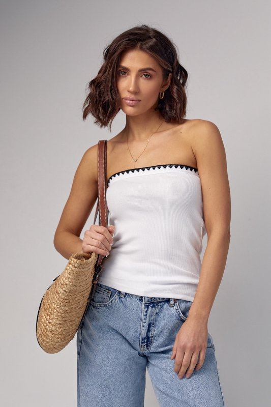 Женский топ без бретелей с асимметричным низом - 241022 белый