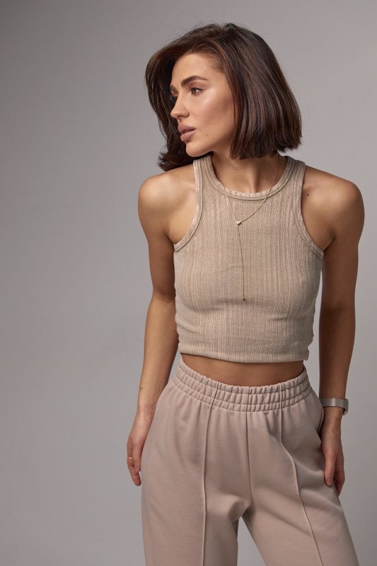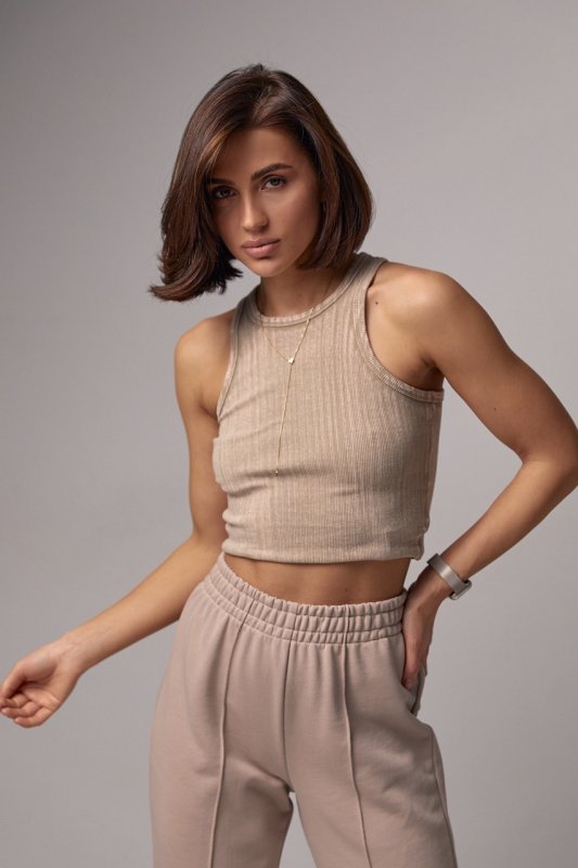 Женский топ-майка с эластичного трикотажа - 060149 бежевый