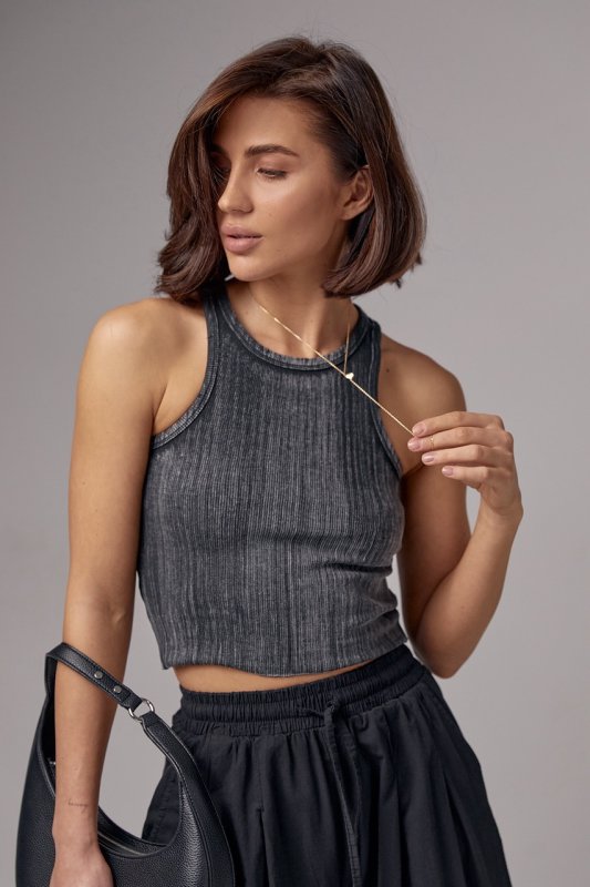 Женский топ-майка с эластичного трикотажа - 060149 черный