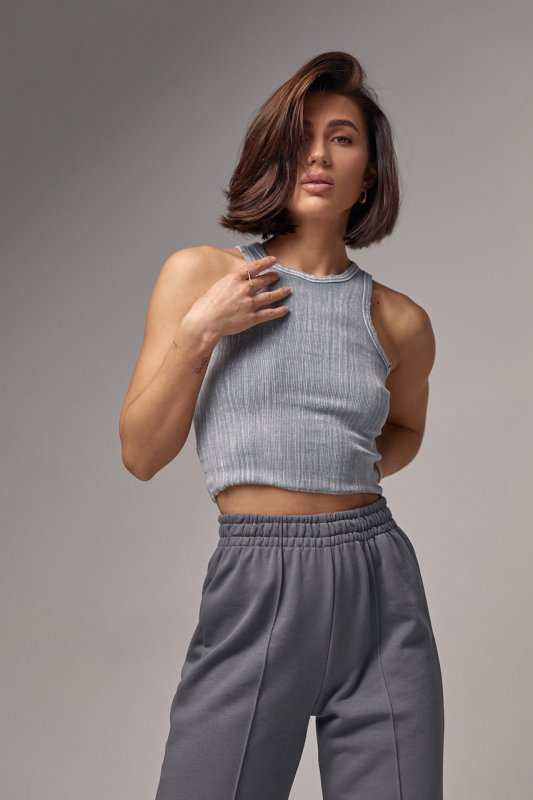 Женский топ-майка с эластичного трикотажа - 060149 светло-серый
